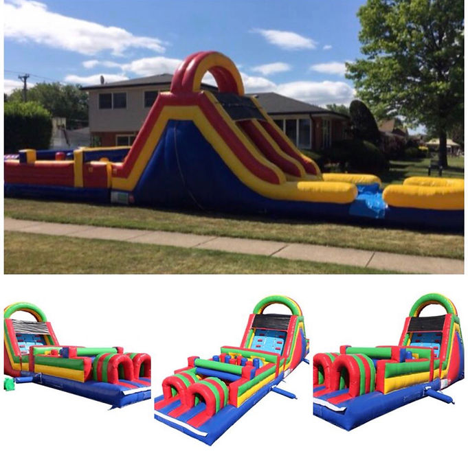 24Lx13Wx16H combo bounce with slide, basketball hoop inside.